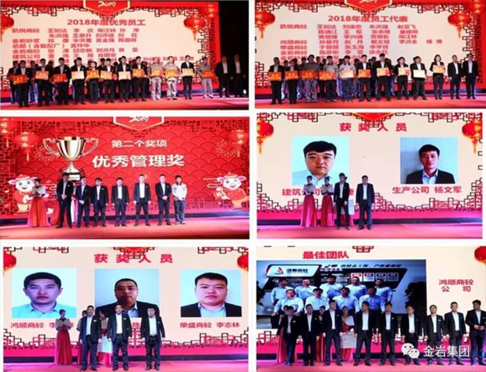 2018年是金巖集團(tuán)飛速發(fā)展的一年,公司的發(fā)展離不開所有員工的共同努力。伴隨著公司的成長與壯大,涌現(xiàn)出一批驍勇善戰(zhàn)、成績卓越的優(yōu)秀員工,此次年會上,分別為他們頒發(fā)各類優(yōu)秀員工及員工代表獎(jiǎng)、優(yōu)秀管理獎(jiǎng)、質(zhì)量先進(jìn)控制獎(jiǎng)、銷售精英獎(jiǎng)、杰出經(jīng)理人及最佳團(tuán)隊(duì)獎(jiǎng)項(xiàng)。在感恩員工們付出的同時(shí),2019年的金巖集團(tuán)將堅(jiān)持初心、牢記使命,與家人們共同站上新的起點(diǎn)、邁上新的高度,攜手共創(chuàng)更美好的未來!
