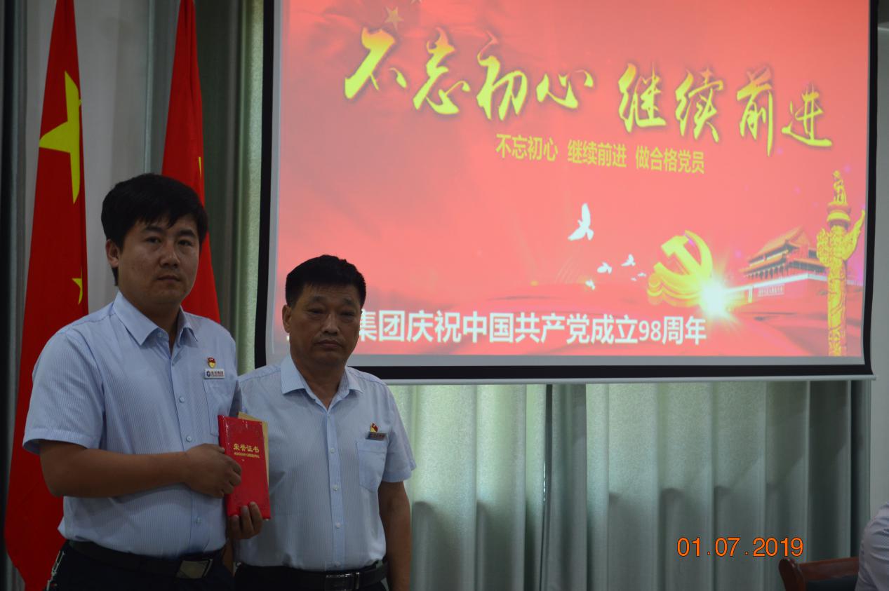 14:30分,黨員會議正式進入議程。集團黨支部委員辛金玉同志主持會議,全體黨員同志肅然起立,面對黨旗,再次莊嚴宣誓,聲聲入耳的莊嚴誓詞在會議室內(nèi)縈繞回響,響亮的聲音昭示著全體共產(chǎn)黨員的堅定決心和無畏意志!